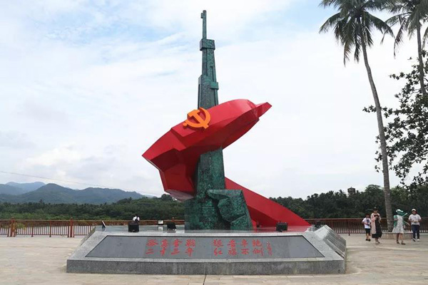1927年,椰子寨戰(zhàn)斗拉開了全瓊武裝總暴動(dòng)的序幕,開啟了瓊崖革命武裝斗爭(zhēng)“二十三年紅旗不倒”的偉大征程。在原椰子寨戰(zhàn)斗登陸渡口處已經(jīng)建起紀(jì)念廣場(chǎng),由一面旗幟和長(zhǎng)槍組成的椰子寨戰(zhàn)斗主體雕塑總高度9.23米,寓意紀(jì)念9月23日這個(gè)不同尋常永遠(yuǎn)值得紀(jì)念、載入史冊(cè)的日子。