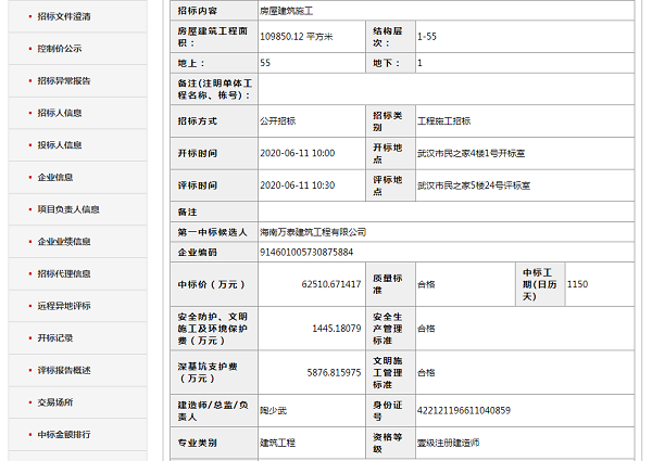 海南萬泰公司成功中標(biāo)武漢6.25億元項(xiàng)目和???.75億元項(xiàng)目