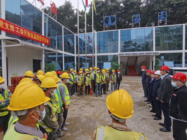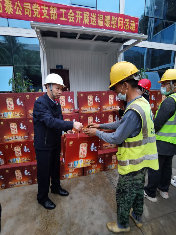 新春送溫暖,真情暖人心。2022年1月11日,在新春佳節(jié)即將來臨之際,省建設(shè)工會(huì),海南萬泰公司黨支部、工會(huì)赴省政務(wù)中心二期項(xiàng)目開展新春慰問一線工人送溫暖活動(dòng),為一線工人送去油米、年貨等暖心物資。省建設(shè)工會(huì)常務(wù)副主席劉志偉、辦公室主任黃符杰,萬泰公司常務(wù)副總、工會(huì)主席顏利,黨支部書記孟晨,工會(huì)副主席林慧等有關(guān)人員參加本次活動(dòng)。