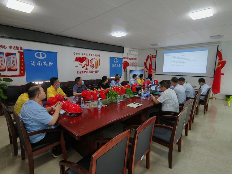 張宇副總首先對中明工程考察團隊的到來表示熱烈歡迎,并表示集團一直以來秉承“誠信 務(wù)實 創(chuàng)新 進取”的企業(yè)宗旨,積極發(fā)展智慧建造,通過技術(shù)創(chuàng)新驅(qū)動工程建設(shè)的發(fā)展。BIM技術(shù)在省政務(wù)中心二期項目的實施,是海南萬泰在規(guī)范項目管理,提高生產(chǎn)效率上的重要體現(xiàn)。在“2021海南自貿(mào)港建筑業(yè)智慧建造高峰論壇暨海南省首屆BIM技術(shù)應(yīng)用大賽頒獎典禮”上,省政務(wù)服務(wù)中心二期項目榮獲海南省首屆BIM技術(shù)應(yīng)用大賽“優(yōu)秀”獎。集團工程、黨建“兩手抓,兩手都要硬”,一方面強化項目管理能力,提高工程標(biāo)準(zhǔn)化水平,另一方面積極開展黨建工作,以黨建引領(lǐng)為抓手,積極推動項目各項工作的開展,讓黨旗飄揚在工地上。