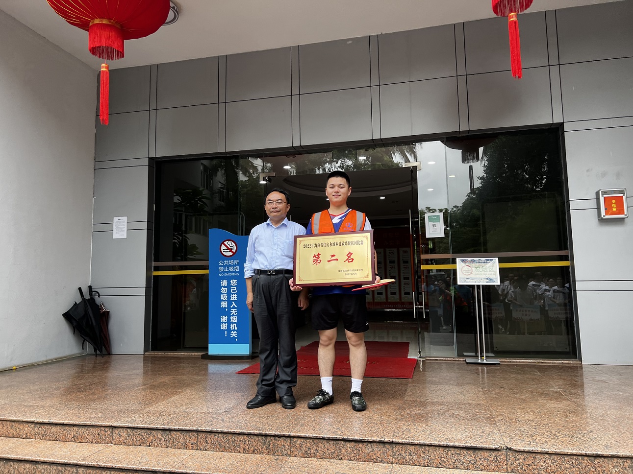 在頒獎儀式上,陳孝京副廳長為中建二局三公司海南分公司、海南萬泰建筑工程有限公司、海南省建設(shè)標(biāo)準(zhǔn)定額站、廳機(jī)關(guān)二隊(duì)等獲獎隊(duì)伍頒發(fā)了榮譽(yù)獎牌及獎金,并與大家合影留念。