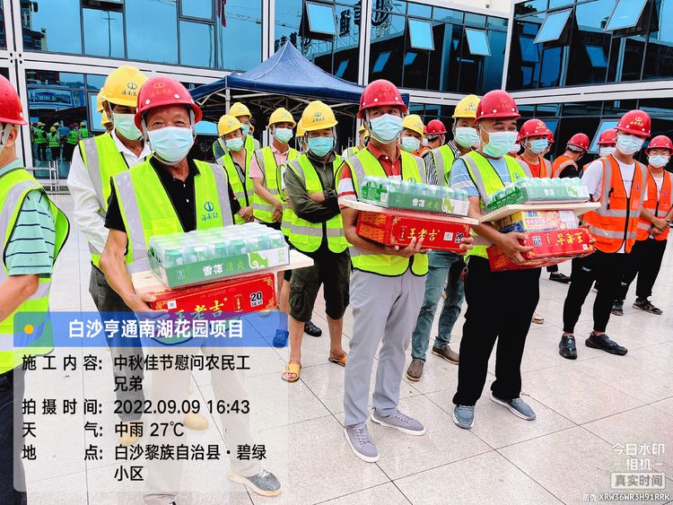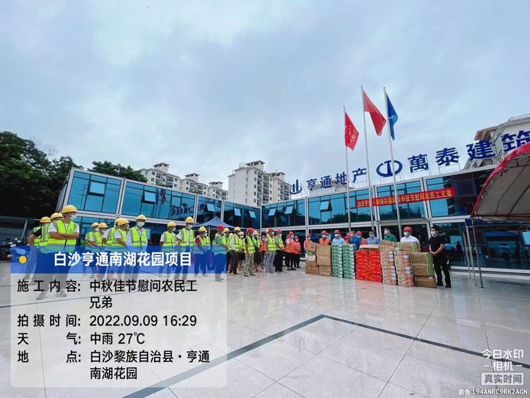 中秋慰問傳真情,濃濃關(guān)懷暖人心。為進一步推動農(nóng)民工權(quán)益保障工作做深做實,慰問馳援三亞歸來的抗疫“英雄”和項目一線工人,提升萬泰大家庭的凝聚力、向心力,2022年9月9日,在中秋佳節(jié)來臨之際以及白沙縣工會的支持下,海南萬泰建筑工程有限公司聯(lián)合白沙亨通房地產(chǎn)開發(fā)有限公司在亨通·南湖花園項目部開展了慰問一線工人主題活動,為工友們送去中秋月餅、米油、消暑茶等慰問品。白沙亨通地產(chǎn)董事長周金華、項目總監(jiān)劉普、財務總監(jiān)何承中,萬泰公司工程部部長侯領(lǐng)、項目執(zhí)行經(jīng)理祁冀等人參加本次活動。