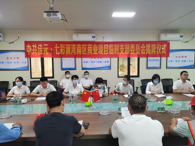 在主持人的指引下,大家移步為佳元·七彩瀾灣項目臨時黨支部進(jìn)行了揭牌,標(biāo)志著項目黨建工作邁上了新臺階,為項目部各項工作的開展奠定了組織基礎(chǔ)。