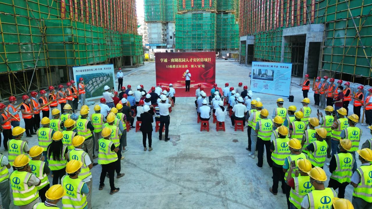 為了貫徹落實黨的二十大精神,加快推進白沙重點民生工程建設,致力于打造宜居新生活,2022年11月29日,由海南萬泰建筑工程有限公司承建的省重點安居房項目——白沙亨通·南湖花園項目主體結(jié)構(gòu)全面封頂儀式圓滿舉行。白沙縣住建局、審批局、資規(guī)局、不動產(chǎn)中心及融媒體中心相關(guān)負責人,亨通安居集團董事長周金華,萬泰公司副總經(jīng)理張宇、工程部部長侯領等有關(guān)人員參加本次封頂儀式,一同見證這一喜慶時刻。儀式由亨通安居集團經(jīng)理冼繼利主持。
