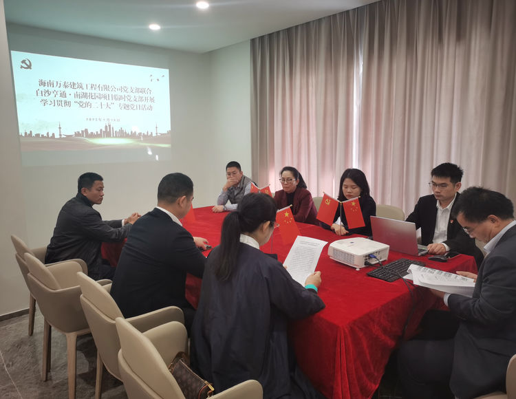 隨后,海南萬泰公司黨支部、亨通·南湖花園項目臨時黨支部集中組織學(xué)習(xí)了黨的二十大會議精神、海南省住房和城鄉(xiāng)建設(shè)工作會議精神以及建筑行業(yè)有關(guān)法律法規(guī)。項目臨時黨支部書記何承中表示,在今后的工作開展中,將繼續(xù)堅持黨建引領(lǐng)項目建設(shè),與項目部一同,不斷努力提升項目安全生產(chǎn)、文明施工、工程質(zhì)量水平,確保項目后續(xù)建設(shè)工作順利進行。
