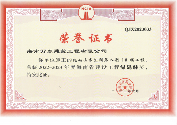 金秋九月,碩果累累。近日,海南萬泰建筑工程有限公司承建的兆南·山水匯園第八期1#樓項目喜獲海南省住房和城鄉(xiāng)建設(shè)廳2022-2023年度海南省建設(shè)工程“綠島杯”獎!