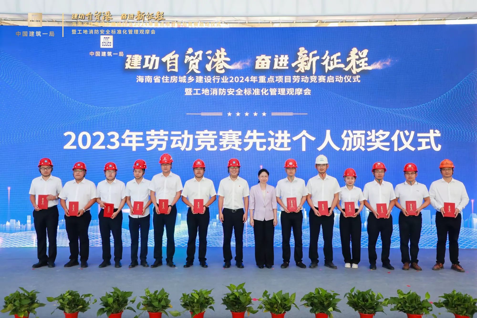 在啟動儀式現(xiàn)場,公司林慧同志作為29名海南省住房城鄉(xiāng)建設(shè)行業(yè)2023年重點(diǎn)項(xiàng)目勞動競賽“先進(jìn)個人”之一上臺領(lǐng)獎,張豪杰同志作為公司代表上臺進(jìn)行參賽單位宣誓。本次勞動競賽以“七比一創(chuàng)”為主要內(nèi)容,即“比黨建引領(lǐng)、比工程進(jìn)度、比工程質(zhì)量、比安全生產(chǎn)、比科學(xué)管理、比技術(shù)創(chuàng)新、比文明施工、創(chuàng)優(yōu)質(zhì)工程”,進(jìn)一步激發(fā)廣大職工不斷提升自身能力水平,勇于奉獻(xiàn)、干事創(chuàng)業(yè)的熱情。