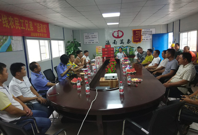海南萬泰建筑工程有限公司五指山清能·麗景灣一期一標(biāo)項目部在會議室組織農(nóng)民工工資集體發(fā)放暨海南萬泰建筑工程有限公司“送清涼”活動。此次共計發(fā)放農(nóng)民工工資150余萬元現(xiàn)金。共送去夏季防暑涼茶50箱、綠豆300斤、冰糖150斤等一批物質(zhì)。
