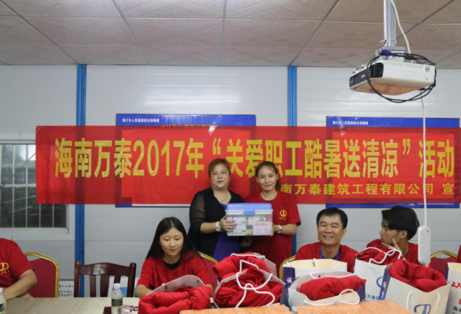 為表達公司對長期駐扎在工地一線工人的關(guān)懷之情,傳達公司各級領(lǐng)導(dǎo)及同事的深切慰問,7月10日下午,萬泰公司副總高長水、張宇,主任秦啟武帶領(lǐng)萬泰公司相關(guān)人員前往??谑腥嗣襻t(yī)院綜合保障樓項目部,為項目工人送去菊花茶、T恤、應(yīng)急藥品等一批慰問物資。