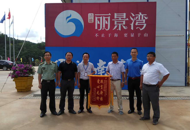 2017年4月25日上午,海南省紀(jì)委扶貧工作隊隊長勞文、省紀(jì)委駐毛道村第一書記李朝、五指山市毛道鄉(xiāng)武裝部部長胡國萬一起將一面書有“扶貧濟困、愛心無價”的錦旗送到海南萬泰清能麗景灣項目部,感謝五指山清能置業(yè)有限公司、海南萬泰建筑工程有限公司對五指山毛道鄉(xiāng)貧困戶危房改造工作的大力支持。